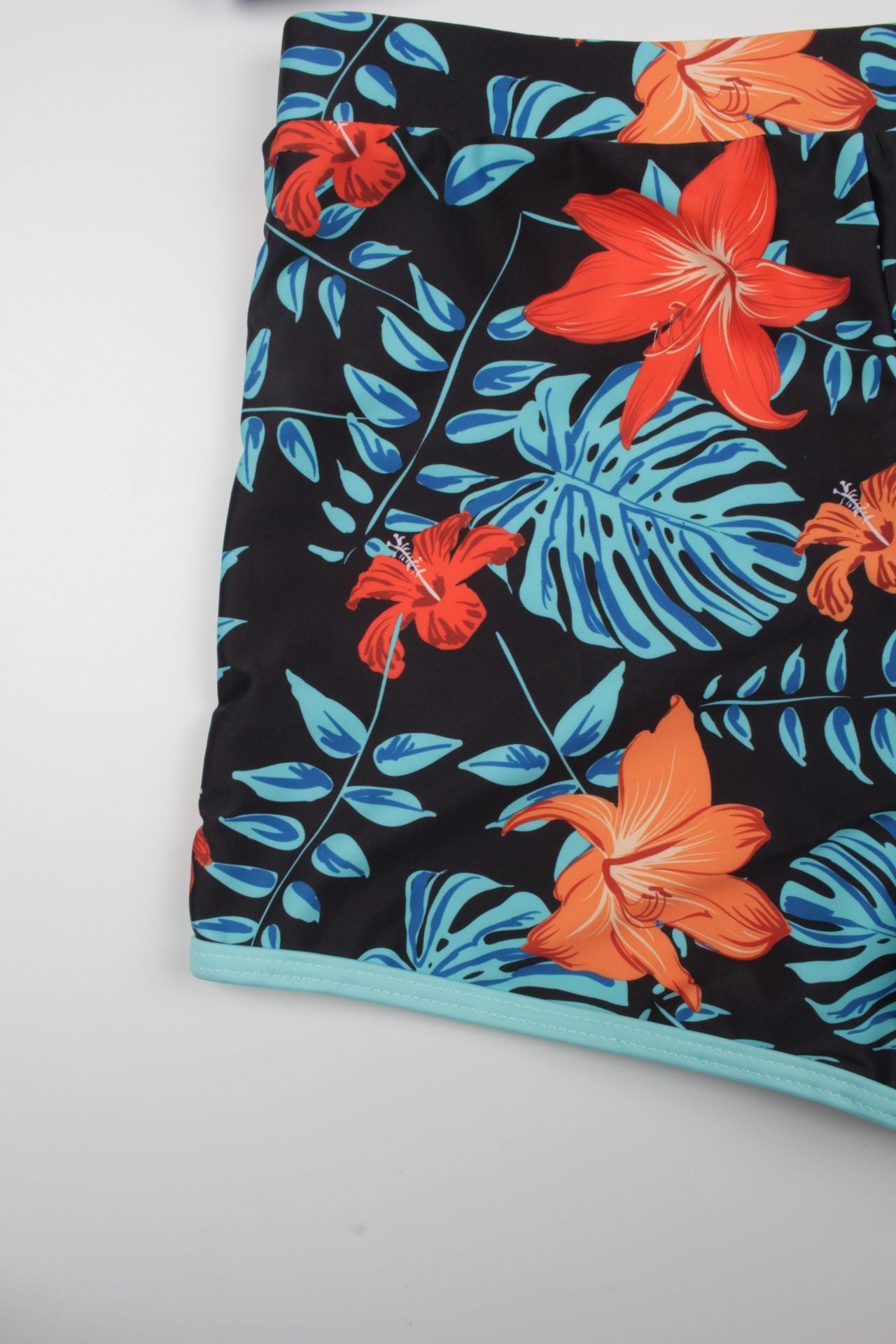 2025 New Arrival Two-Piece Bikini Swimsuit with Sporty Trendy Print & Modest Boyshorts Set Orange-Red