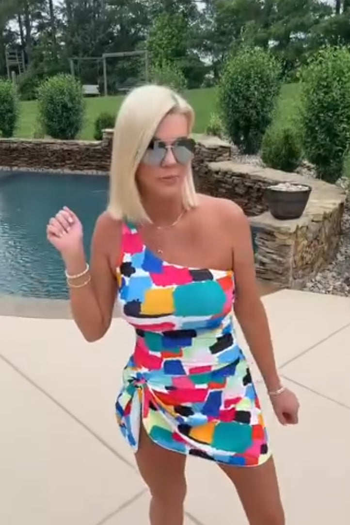 One-Shoulder Swimsuit for Women - Slim Fit Monokini with Skirted Design Color Blocks