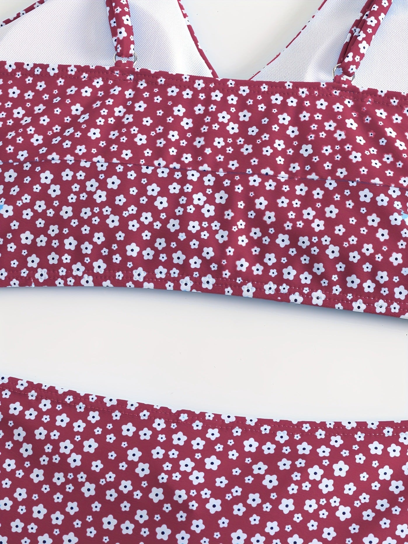 Red Solid Color Bikini Set with Floral Boyshorts – Two-Piece Swimsuit for Women